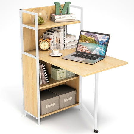 tribesigns folding computer desk bookshelves pc